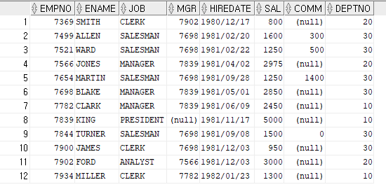 SELECT EMPNO, ENAME FROM EMP;