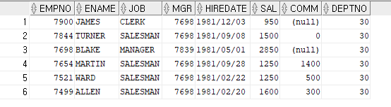 SELECT * FROM EMP WHERE DEPTNO = 30 ORDER BY EMPNO;