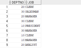 SELECT DEPTNO,JOB FROM EMP GROUP BY DEPTNO, JOB;